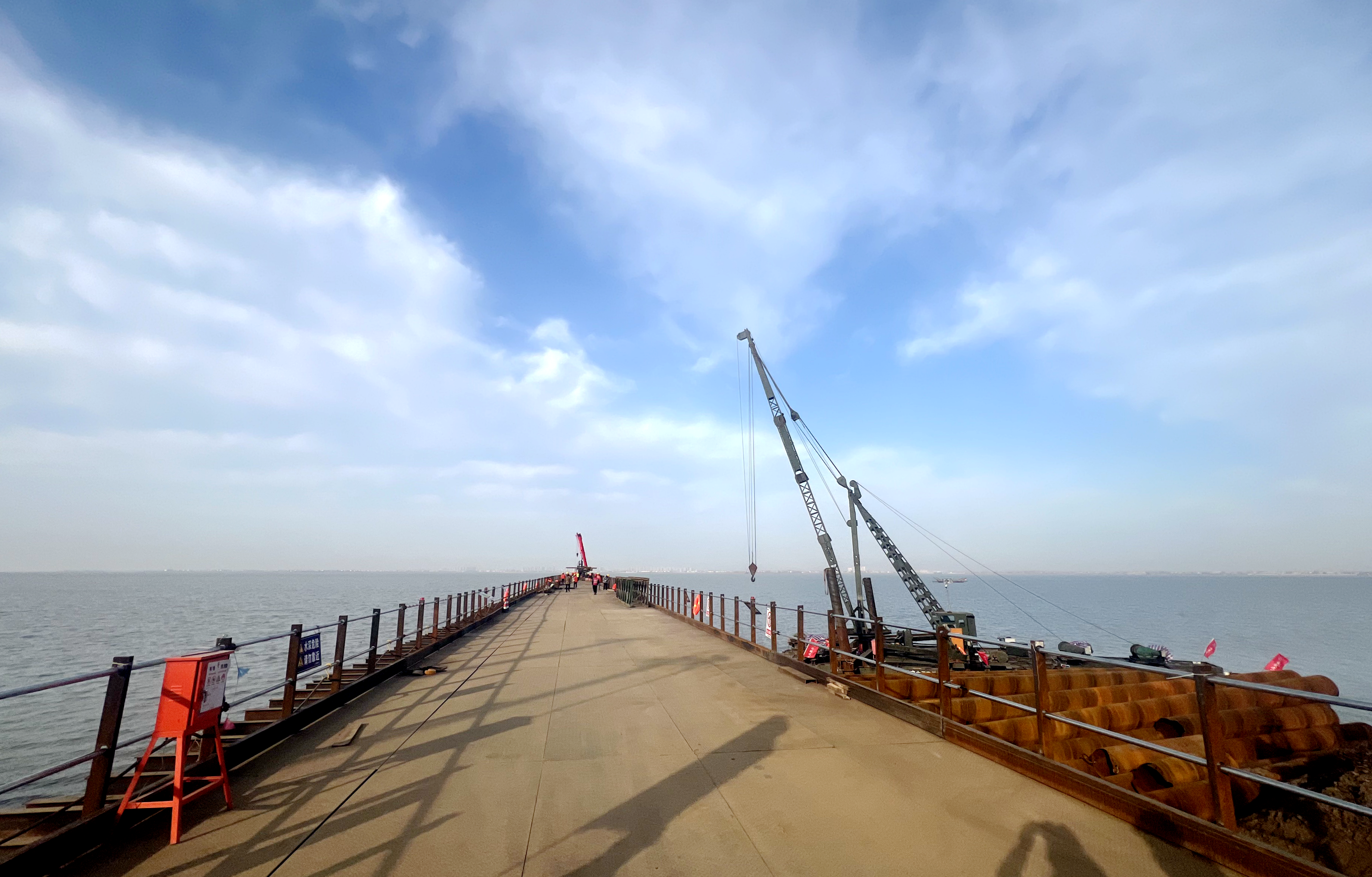 項目東西兩岸齊頭并進,推動城東湖特大橋鋼便橋施工,鋼筋加工廠、攪拌站等場站建設(shè)同步推進。