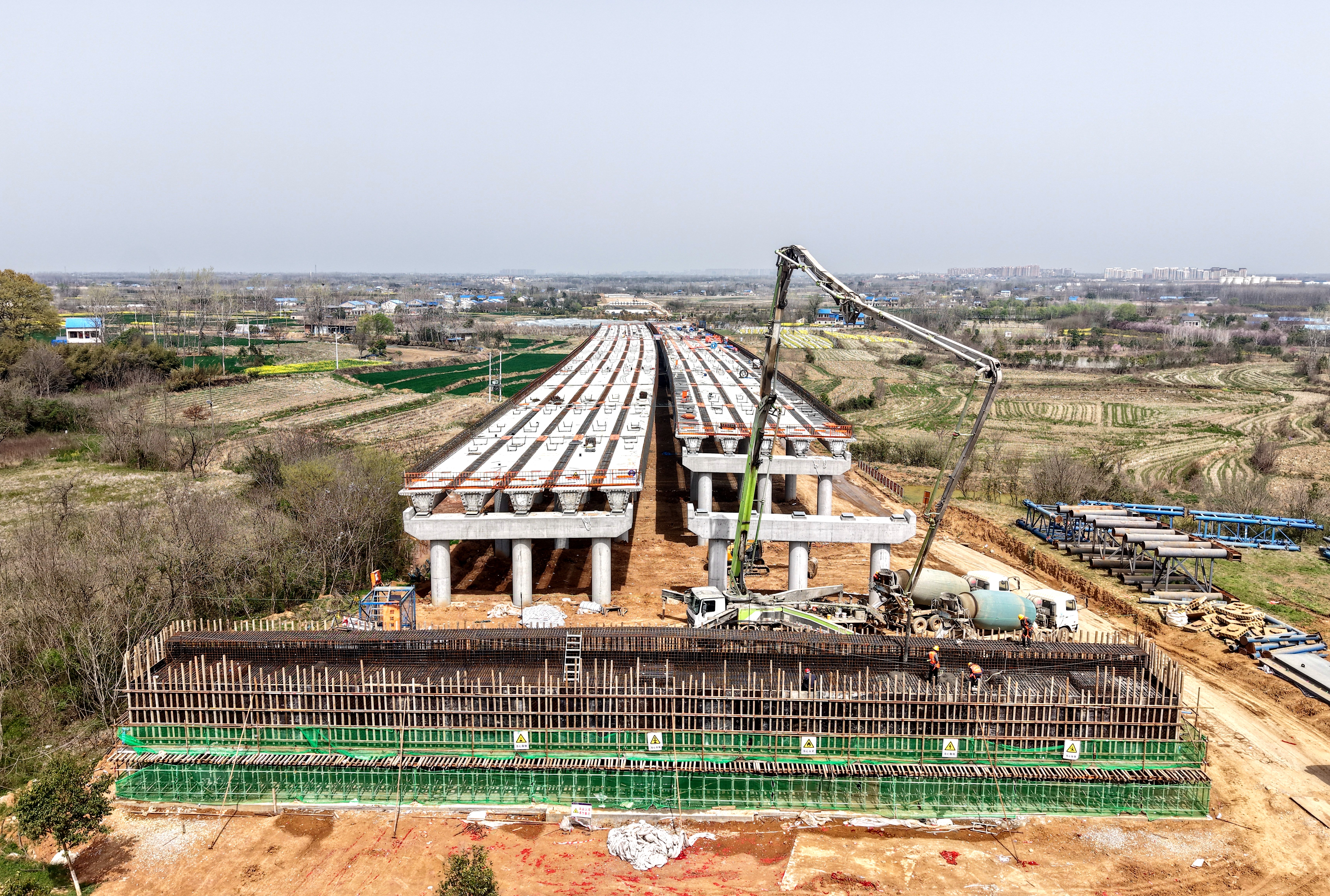 春暉大干正當(dāng)時 | 淮桐高速合肥段路基2標淠河總干渠大橋主橋首座蓋梁澆筑完成