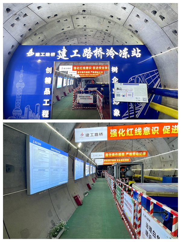 合肥新橋機場S1線先行段項目固鎮(zhèn)路站-預(yù)留盾構(gòu)井區(qū)間1號聯(lián)絡(luò)通道需穿越富水砂層,傳統(tǒng)暗挖易引發(fā)涌水塌方。項目團隊采用“凍結(jié)法”,利用人工制冷技術(shù),將開挖面及周圍地層凍結(jié)成零下30℃的堅硬“冰棍”,形成堅硬“冰墻”后再開挖。這一技術(shù)成功解決富水地層支護難題,工期僅120天,且安全性遠(yuǎn)超傳統(tǒng)暗挖法,是安徽建工集團軌道項目首例。