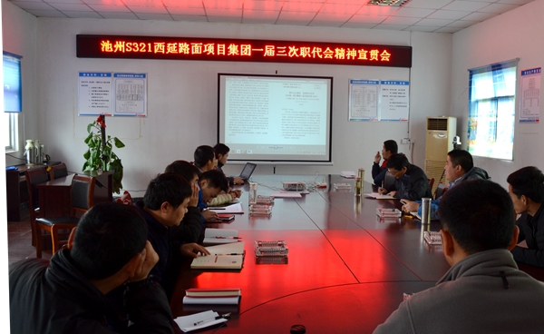 1月15日,在公司的統(tǒng)一部署下,路面公司各項目組織召開集團一屆三次職代會精神宣貫會,集中學(xué)習(xí)傳達會議精神,認真分析當前各項目生產(chǎn)面臨的形勢任務(wù),精心謀劃新一年的工作。
