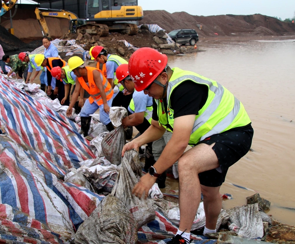 7月20日上午,項目拌合站現(xiàn)場,防汛搶險工作正如火如荼的開展。支部書記朱達霏正帶領(lǐng)黨員和青年員工奮戰(zhàn)在防汛搶險一線。為了搶抓時間,盡早解決拌合站內(nèi)澇問題,項目部調(diào)入兩臺裝載機、四臺鏟車,實行兩班倒制,人機晝夜連續(xù)奮戰(zhàn),突擊對拌合站進行圍堰加高筑壩。24日下午,一段長約300米,高1.5米的梯形圍堰墻修筑工程圓滿完成,成功將拌合站外的洪水擋在圍堰之外。