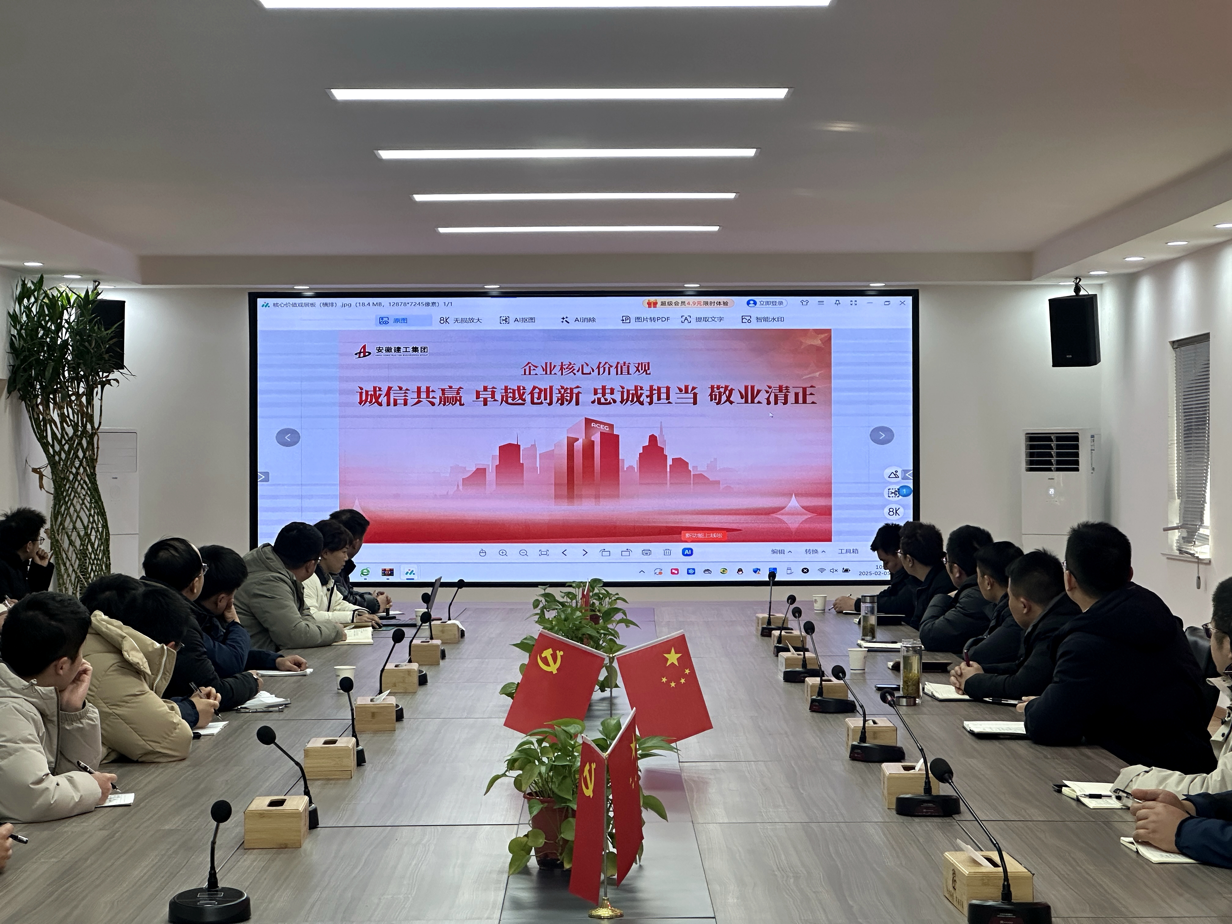 公司機關(guān)及時更新門廳、電梯間宣傳展板內(nèi)容,并第一時間組織干部職工學(xué)習(xí)集團核心價值觀內(nèi)容及闡釋。