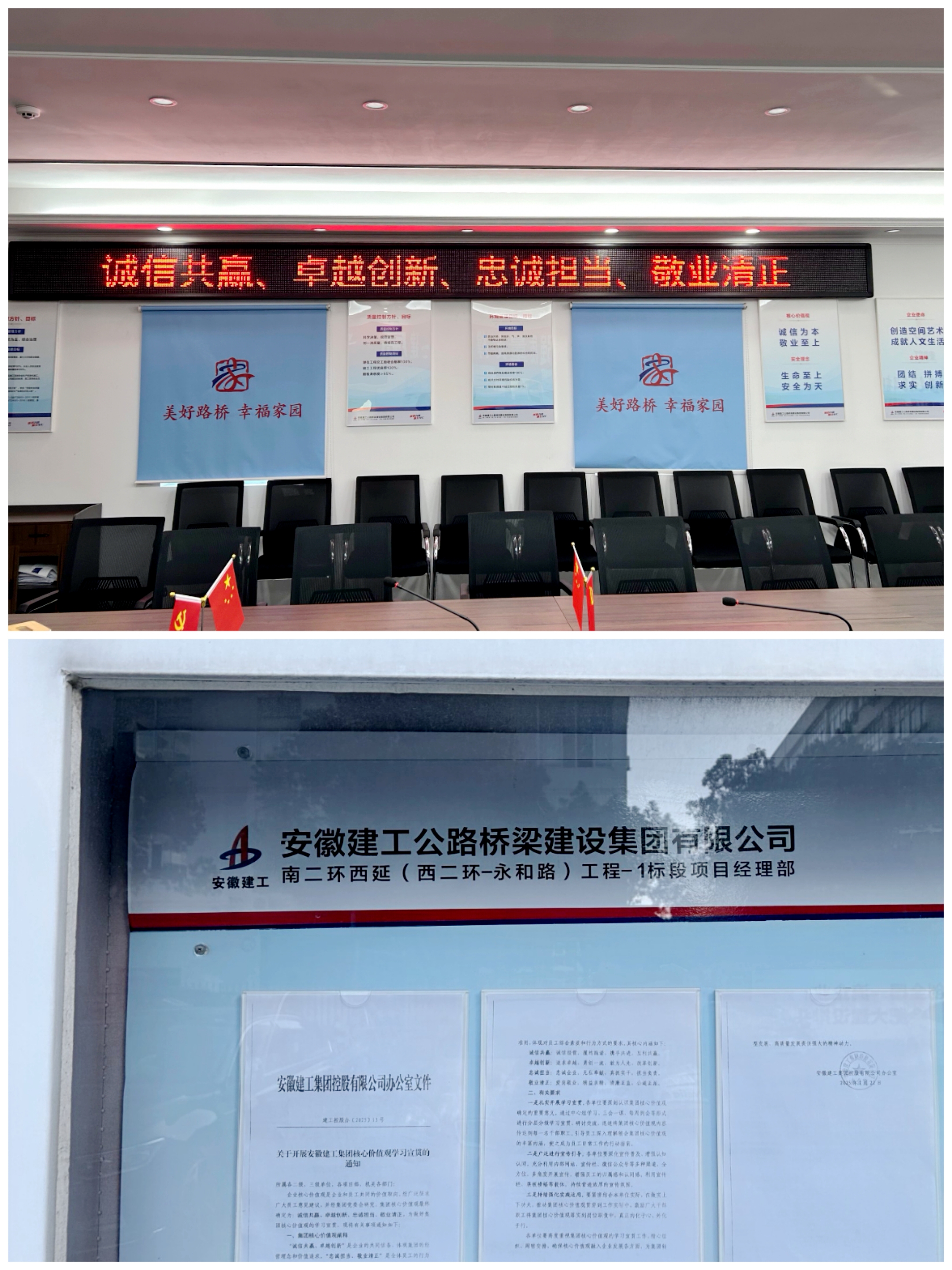 南二環(huán)西延項目利用電子屏和駐地宣傳欄對集團(tuán)核心價值觀進(jìn)行宣傳,營造良好氛圍。