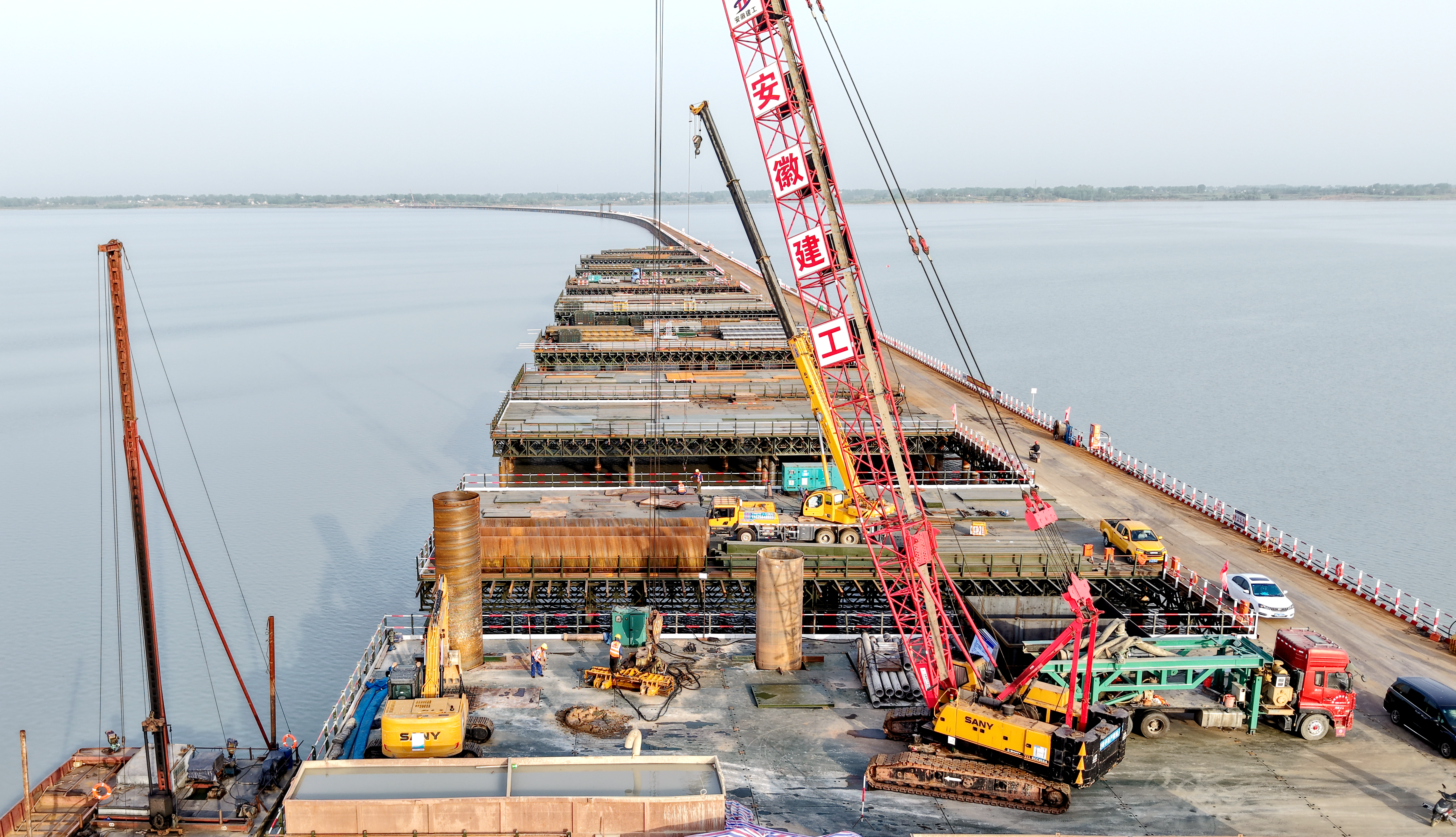 春暉大干正當時 | S20長固高速路基01標城東湖特大橋首根水上樁基澆筑完成